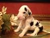 I waited many years to get a harlequin dane. I have always thought they were beautiful. Lyssa is the second Great Dane that we have owned. We also fostered another dane for a short while. She is pretty spunky for a Great Dane. She loves to run and play with other dogs, jump on the trampoline, and go for walks.